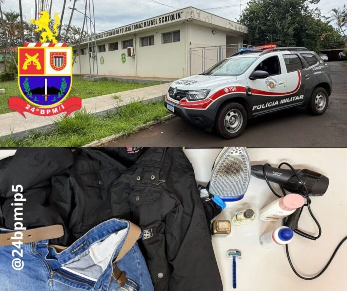 Após acionamento via Centro de Operações, os policiais mantiveram contato com uma das vítimas, que relatou que um homem havia subtraído diversos objetos do local e deixado a área em seguida. De imediato, foram iniciadas diligências nas imediações, resultando na localização do suspeito nas proximidades do bairro Agostinho Nino Deperon.