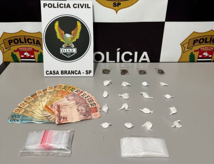 ​Agentes da DISE (Delegacia de Investigações Sobre Entorpecentes) de Casa Branca surpreenderam a suspeita na residência. No local, foram encontradas porções de maconha e cocaína, além de materiais utilizados para embalagem das substâncias e dinheiro.