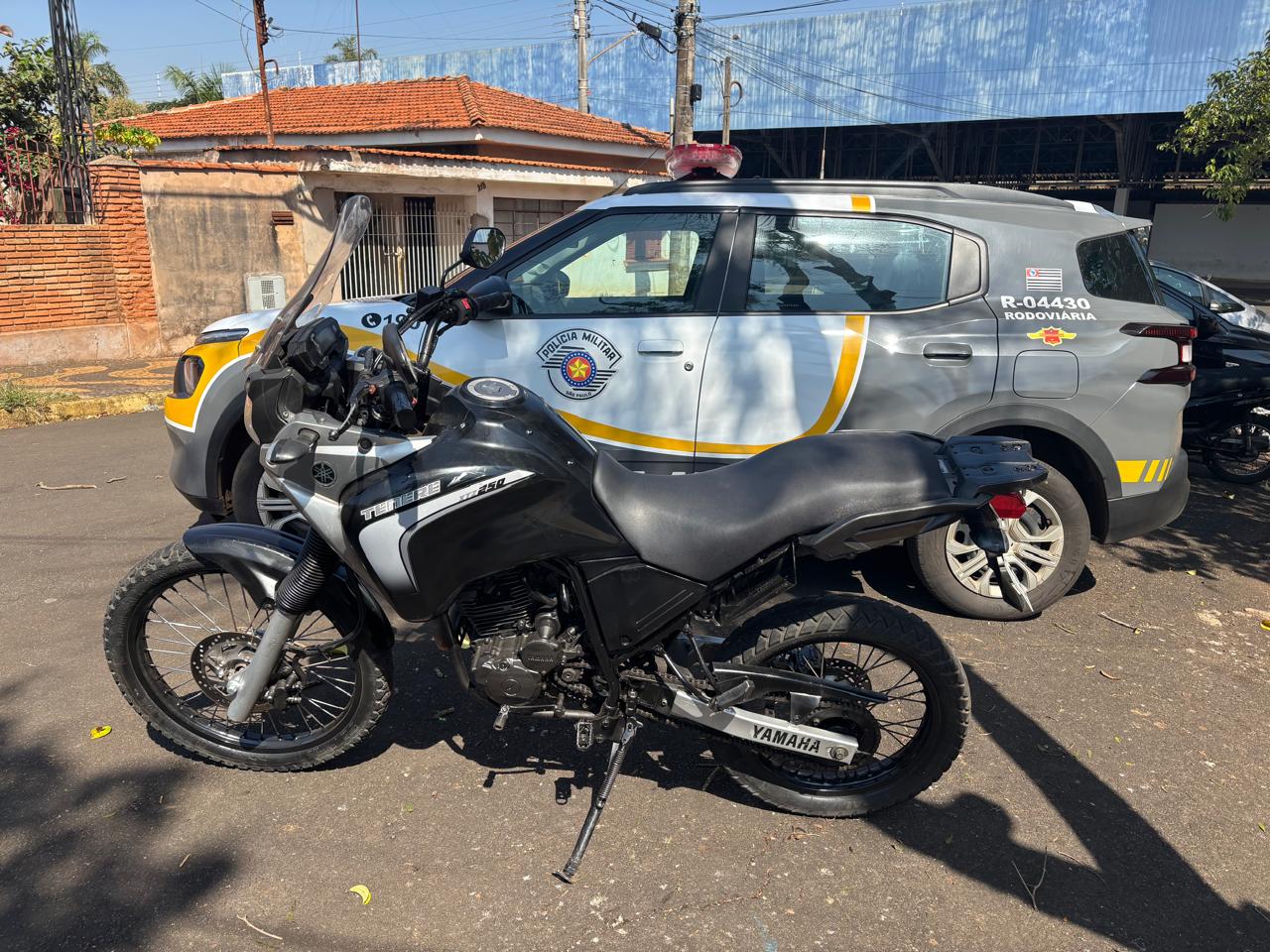 ​A equipe abordou uma motocicleta Yamaha Teneré e, ao consultar a placa, verificou que o emplacamento não tinha registro. Uma inspeção mais detalhada revelou que a numeração do motor e do chassi estava suprimida. Além disso, a pintura da moto apresentava indícios de ter sido sobreposta à cor original, levantando ainda mais suspeitas.