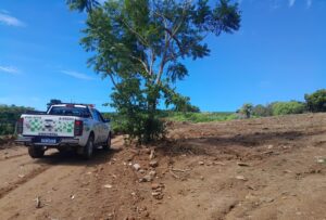 Ao chegarem ao local indicado, os agentes da viatura A-05205 confirmaram o dano ambiental. A equipe, composta pela Cabo PM Eduarda e pelo Soldado PM Monteiro, identificou o corte isolado de 16 exemplares arbóreos nativos, além da supressão de 0,08 hectare de vegetação nativa em área considerada comum.