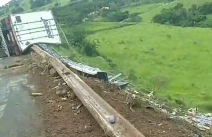 Motoristas que trafegam pela MGC-491 devem redobrar a atenção nesta segunda-feira (19). Uma carreta carregada com produtos de limpeza tombou em uma curva acentuada no trecho que liga Monte Belo a Muzambinho, no Sul de Minas.