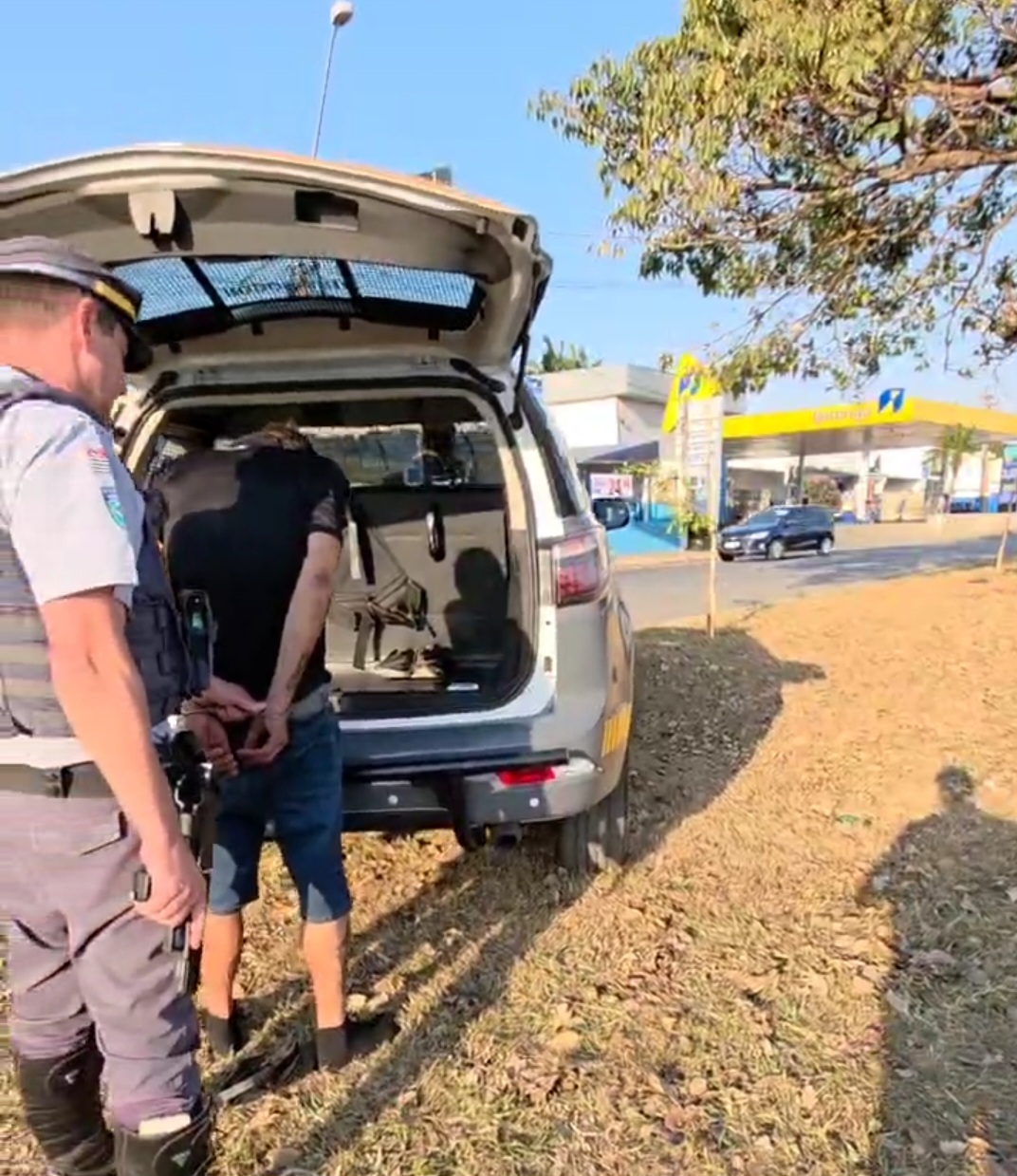Ao receber o sinal de parada da viatura, o condutor desobedeceu à ordem e empreendeu fuga por aproximadamente quatro quilômetros. A perseguição só terminou quando o suspeito adentrou o bairro Santa Mônica e foi abordado em frente ao Higa Atacado, no cruzamento da Avenida Sylvia da Silva Braga com a Rua Pedro Stancato.