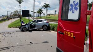 Uma colisão contra objeto fixo mobilizou o Corpo de Bombeiros na tarde deste domingo (22), em Varginha. O acidente ocorreu por volta das 12h45 e envolveu um automóvel que atingiu um muro, resultando em danos significativos na parte frontal do veículo.